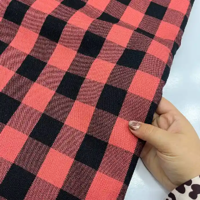 کشمیر سپاهان چهارخونه رنگ مشکی و مرجانی