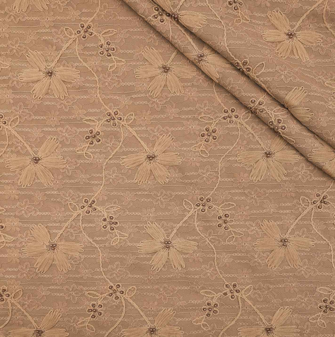 پارچه دانتل کار شده پشت آستر رنگ نسکافه ای