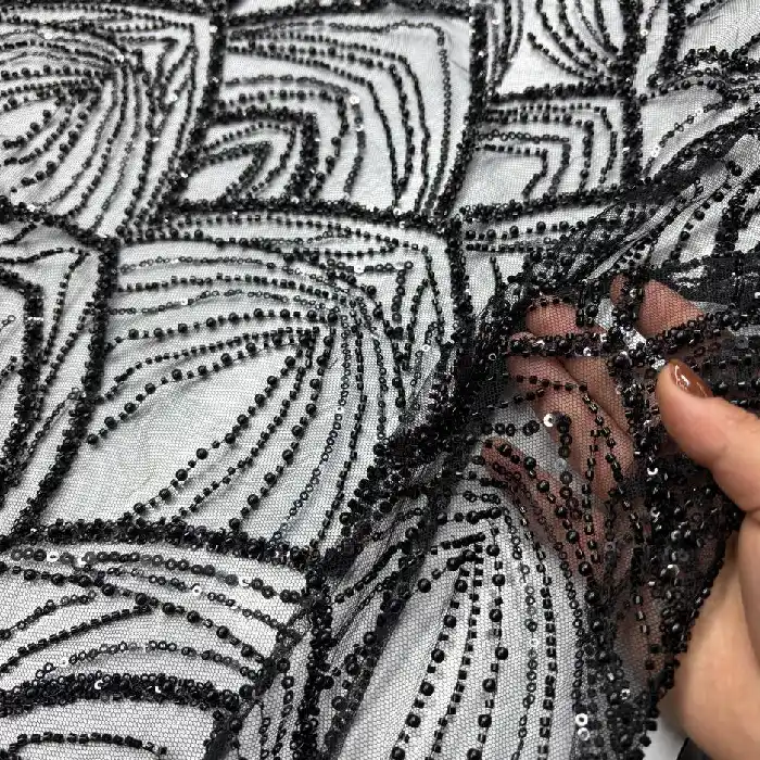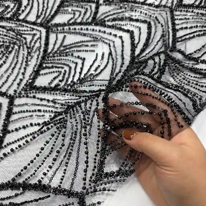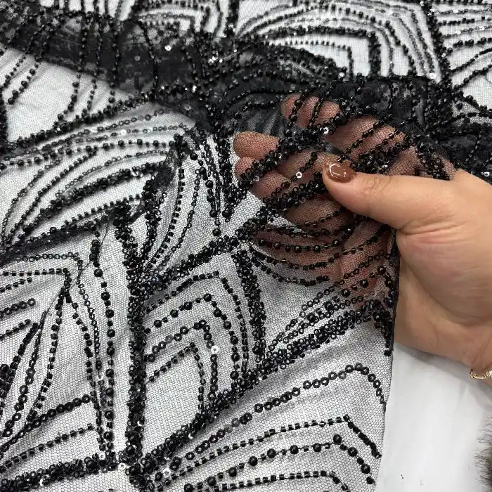 مجلسی طرح گنبد سنگدوزی و منجوق دوزی گل برجسته رنگ مشکی