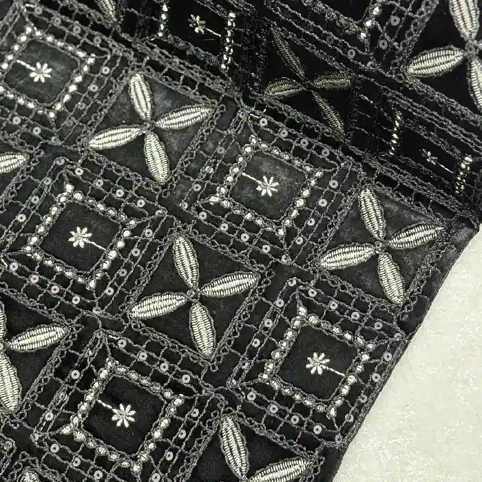 نوع پارچه: مخمل قیطون دوزی رنگ مشکی