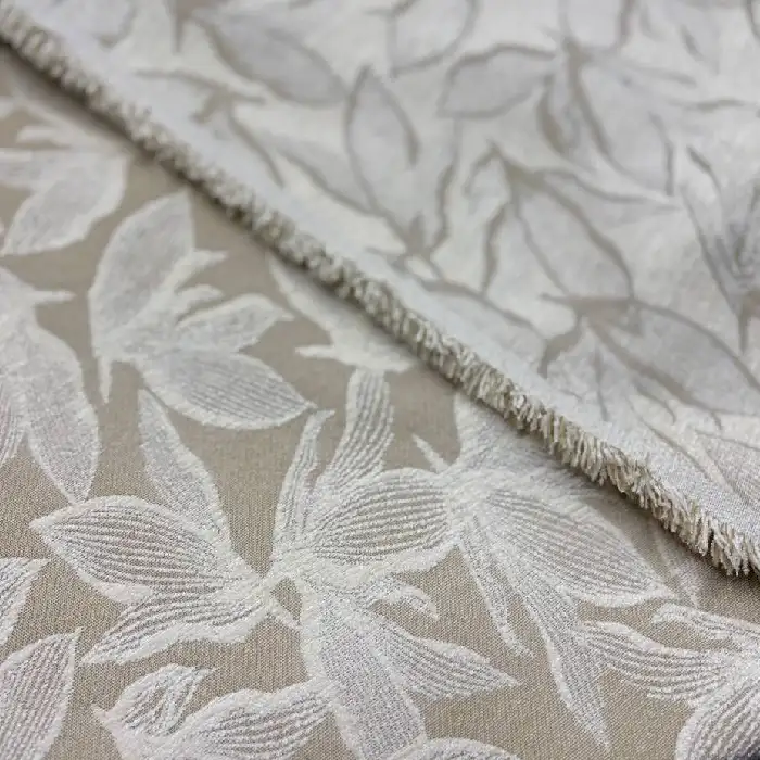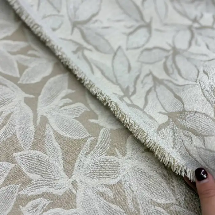 مخمل شانل طرح برگ دو رو رنگ کرم