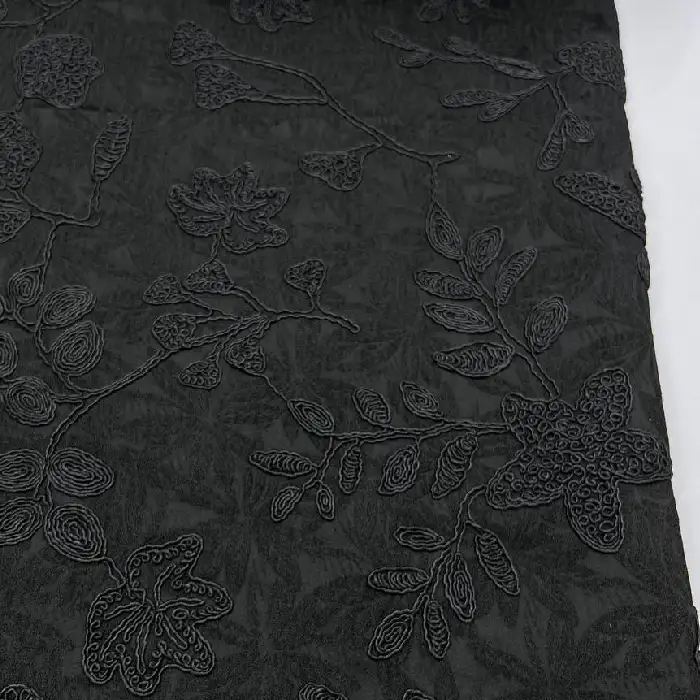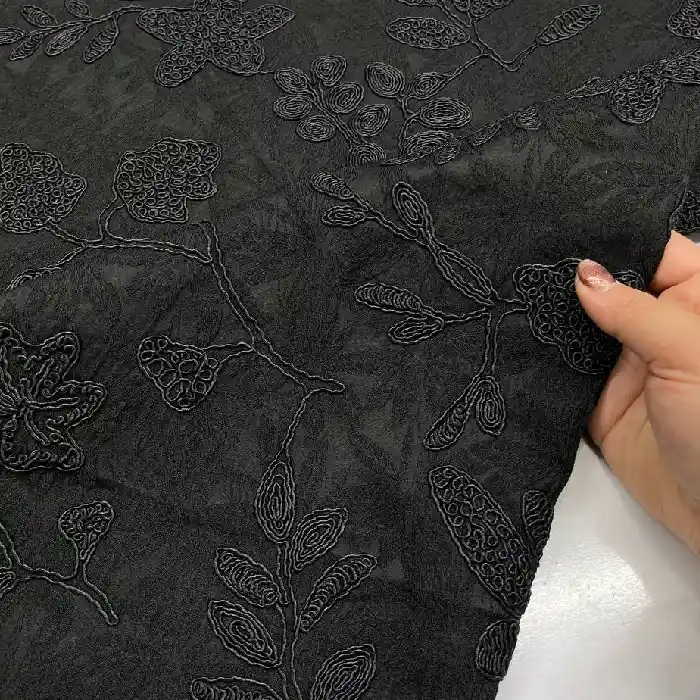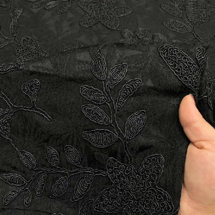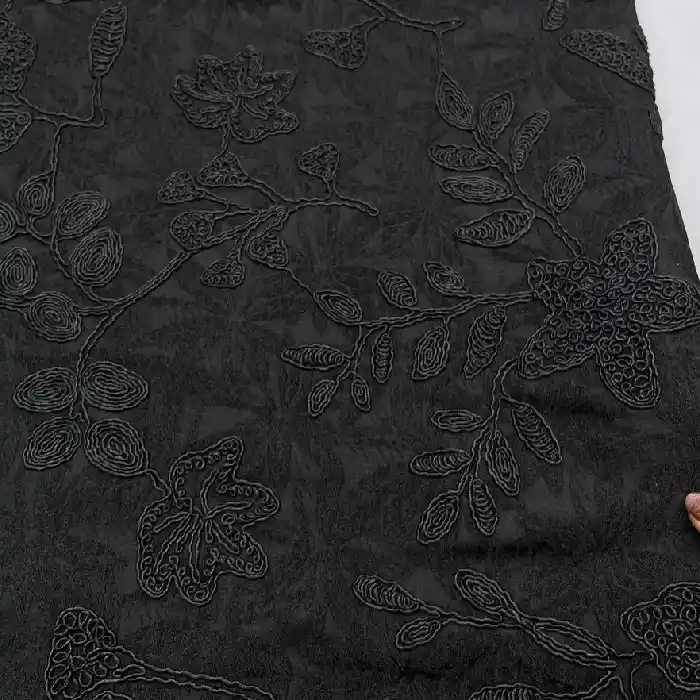پارچه ژاکارد ترک گلدوزی گل اپلیکه رنگ مشکی
